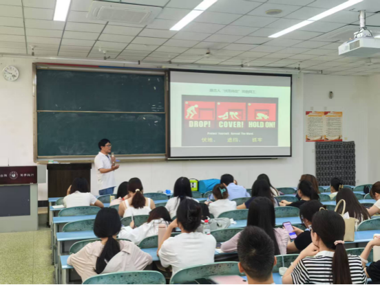 在自然灾害应对技巧讲解环节,榕嘉老师首先聚焦地震灾害。他结合土耳其大地震等典型案例,详细阐述了 “伏地、遮挡、手抓牢” 的避险原则,同时纠正了常见误区,如地震时盲目跳楼逃生。“在高楼中遇到地震,应迅速躲在坚固的家具下方,用坐垫、枕头等保护好头部。待地震间隙,再按照疏散指示有序撤离。”